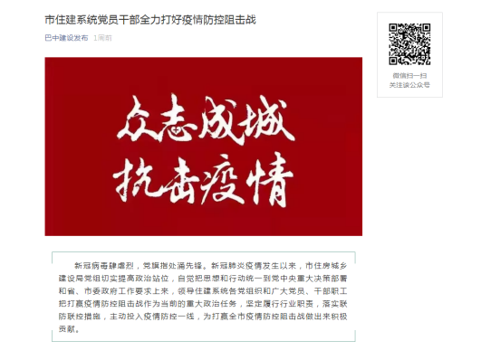 近日,安徽二建四川巴中半山逸城項目一次性通過巴中市安全監督站復工復產驗收,正式復工。并通過巴中市住房城鄉建設局機關黨委書記楊白玉上報,在巴中建設發布(公眾號)《市住建系統黨員干部全力打好疫情防控狙擊站》一文中發表,進行宣傳。